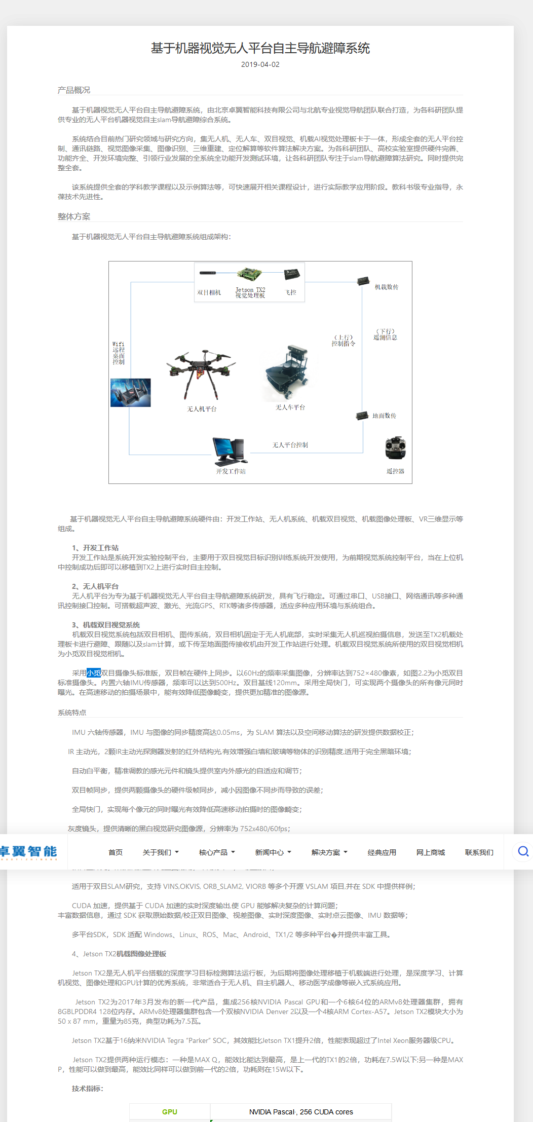 卓翼智能用的小觅,基于机器视觉无人平台自主导航避障系统