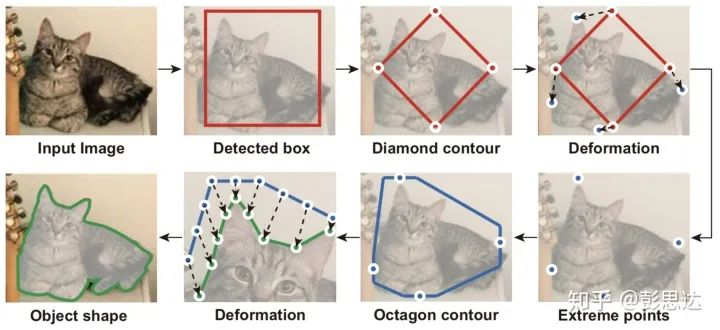 论文里的pipeline就是首先通过预测extreme point来得到initial contour,然后将initial contour变形为物体边缘: