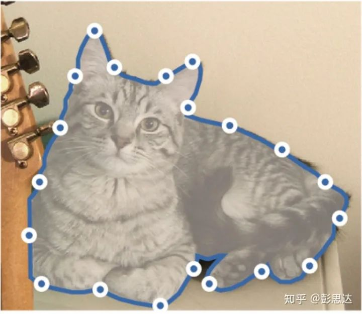 考虑到逐像素分割有诸多限制,我们的工作选择用contour来表示物体的shape。Contour是一组有序的点,而且是首尾相连的。比如图片中猫的边缘就是一个Contour。