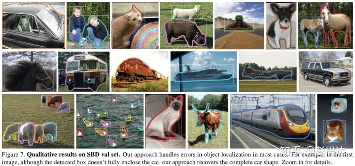 因为遮挡的原因,图片中的物体可能会分成多段。比如图中的车,因为柱子的遮挡,就分成了不连续的三段。要分割这辆车,就需要分别分割它的三段part,也就需要三个contour。但是根据前面的pipeline,一个矩形框只会出一个contour,所以无法处理fragmented instances。