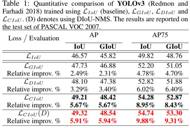 作者在文中还提到了对NMS进行改进,提出将中心距离也作为其中的一个变量来选择最好的预测框