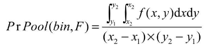 与RoI Align只采样4个点不同,PrRoI Pooling方法将整个区域看做是连续的,采用积分公式求解每一个区域的池化输出值,区域内的每一个点(x, y)都可以通过双线性插值的方法得到。这种方法还有一个好处是其反向传播是连续可导的,因此避免了任何的量化过程
