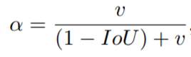 由于IoU预测值可以作为边框定位的置信度,因此可以利用其来改善NMS过程。IoU-Net利用IoU的预测值作为边框排列的依据,并抑制掉与当前框IoU超过设定阈值的其他候选框。此外,在NMS过程中,IoU-Net还做了置信度的聚类,即对于匹配到同一真实物体的边框,类别也需要拥有一致的预测值。具体做法是,在NMS过程中,当边框A抑制边框B时,通过下式来更新边框A的分类置信度。