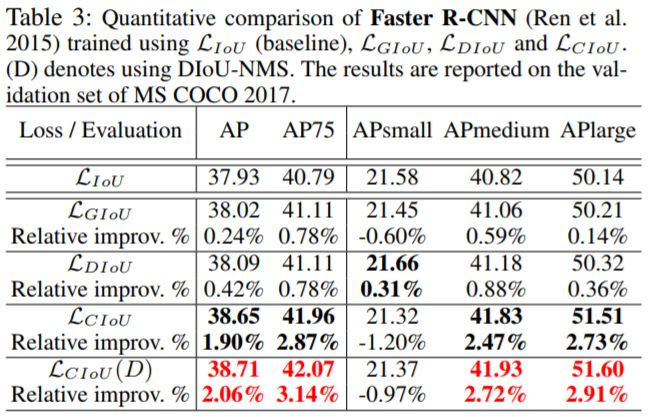 对于FasterRCNN来看,DIoU和CIoU都有一定的提升,且CIoU提升比较大。