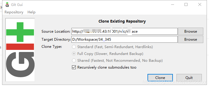 1、git GUI默认clone git仓库的default分支,本例中是master分支