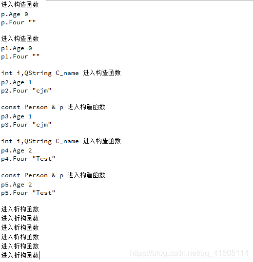 {qDebug()<<"const Person & p 进入构造函数";Age = p.Age;name = p.name;