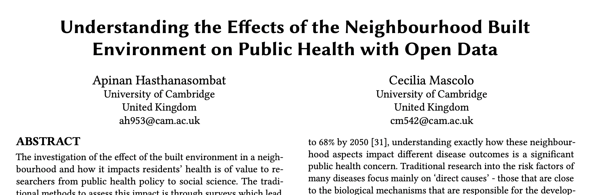 文章标题《Understanding the Effects of the Neighbourhood Built Environment on Public Health with Open Data》