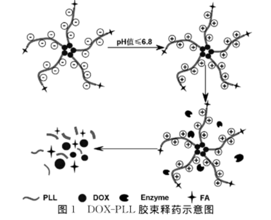 结论:合成一种具有肿瘤靶向及电荷翻转功能的聚氨基酸前体药物 DOX-PLL(DMA)-FA。DOX-PLL(DMA)-FA在水溶液中可以通过自组装形成稳定的纳米胶束。该前药胶束结构简单,不含惰性成分,不仅能够在生理环境下保持负电性,并且能够在弱酸环境下实现电荷翻转。因此,该聚赖氨酸纳米前药胶束在靶向药物载体领域有潜在的应用价值。