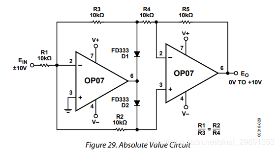 其中,URH>URL,D1和D2不能省略,防止两个运放输出电平相反时损坏运放。比如,运放A1输出VOH,但是运放A2输出VOL,D1导通,但是D2截止,因此电流不会从A1流入A2,避免大电流损坏器件。