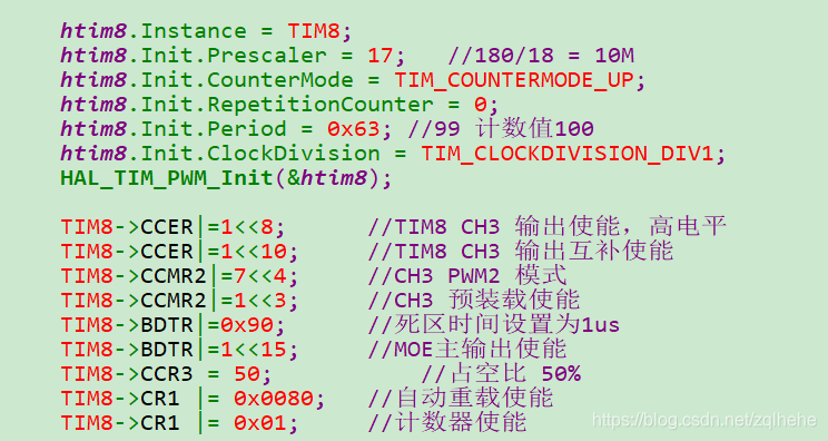 本文使用的芯片是STM32F429,用TIM8 的CH3 输出互补PWM