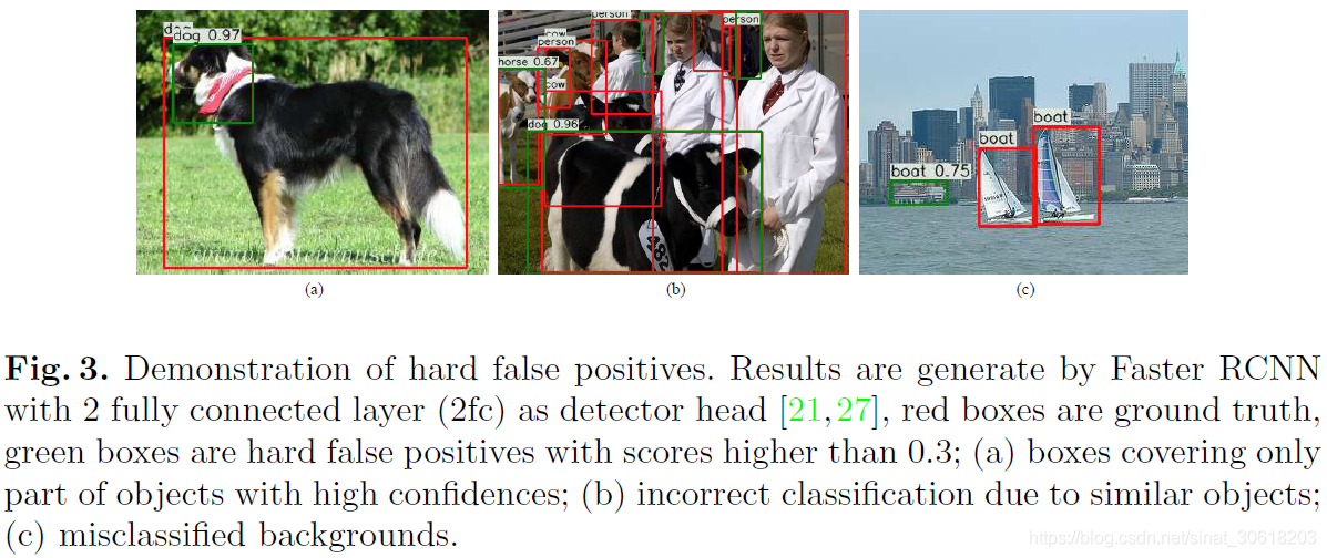- 背景错分为目标:背景pattern与目标相似;感受野过大,包含了相邻的目标物体