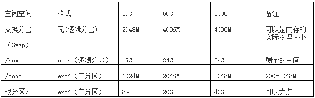 系统安装在根目录下:/ ,系统安装盘相当与Windows下的C盘,/home相当与自己存放文档的D盘; 其中交换空间是内存的磁盘映像,推荐分为内存的2倍。/boot相当于启动区域分为200M