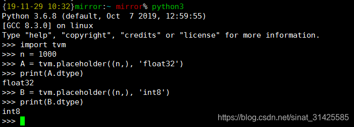 print(type(n), n.dtype)A = tvm.placeholder((n,), name='a')