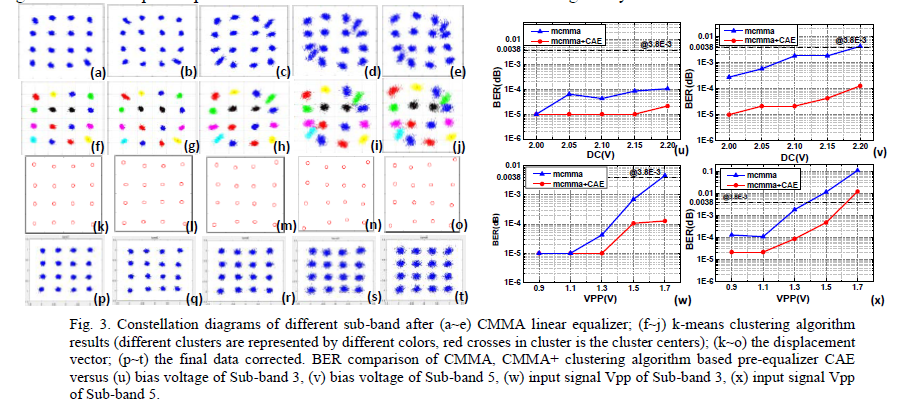 本文针对非线性提出一个在机器学习中K均值聚类的预矫正方法。加上预矫正的表现提升了5-bandCAP16的传输。在通常结论中,这个系统的表现可以有效的50% ~99% BER reduction in some of the sub-band