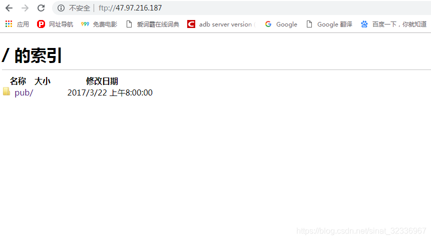 修改完之后,启动了vsftpd服务,不修改任何配置文件的情况下。访问ftp://47.97.216.187。就能出现下面的页面