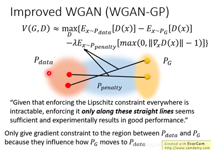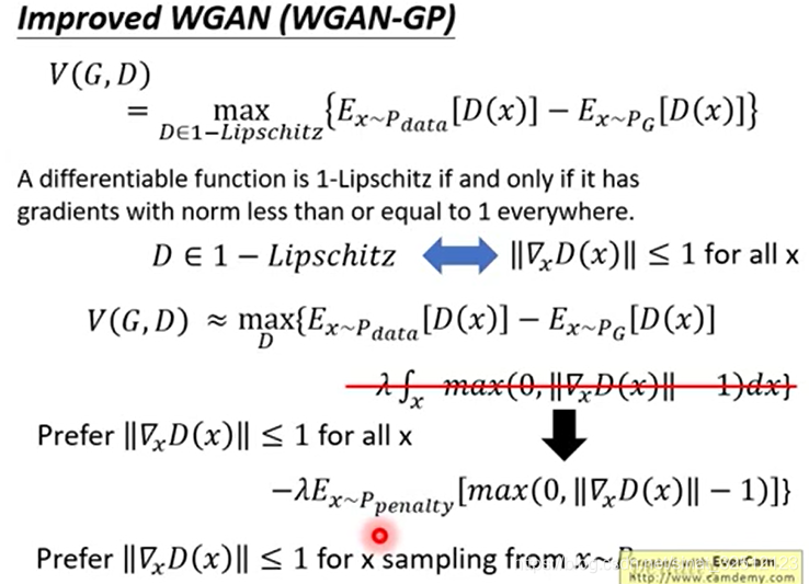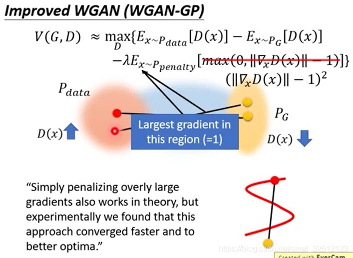 但是WGAN只是单纯的smooth,因此衍生出一个Improved WGAN(WGAN GP)