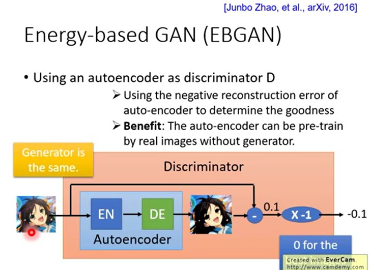 用原来的方法,刚开始D不会很厉害的。用EBGAN一开始就可以产生比较厉害的D。