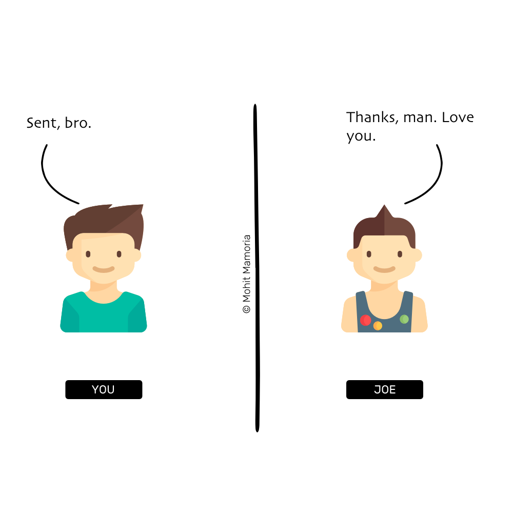 想象一下,Joe是你最好的朋友。他正在国外旅行,假期的第5天,他打电话给你说,“伙计,我钱花光了,我需要点钱”。