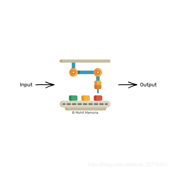 想象一个被厚墙包围的机器。如果你从左边发送一个里面有东西的盒子,它会吐出一个里面有别的东西的盒子