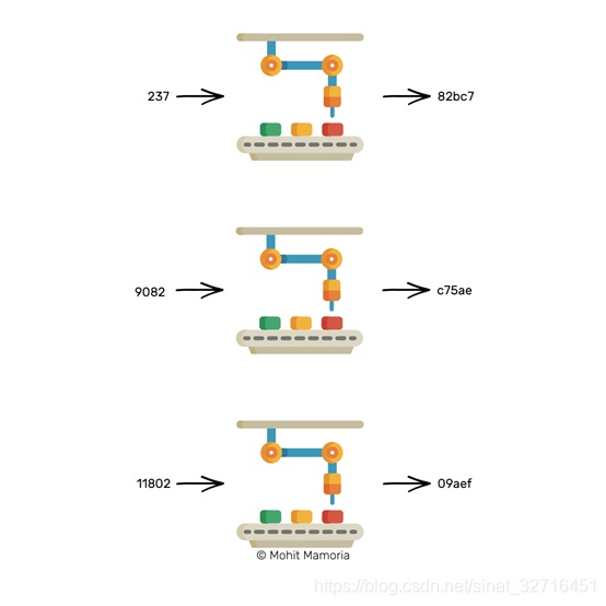 在这篇文章的其余部分,我们将记住神奇机器(或哈希函数)的这个特性: