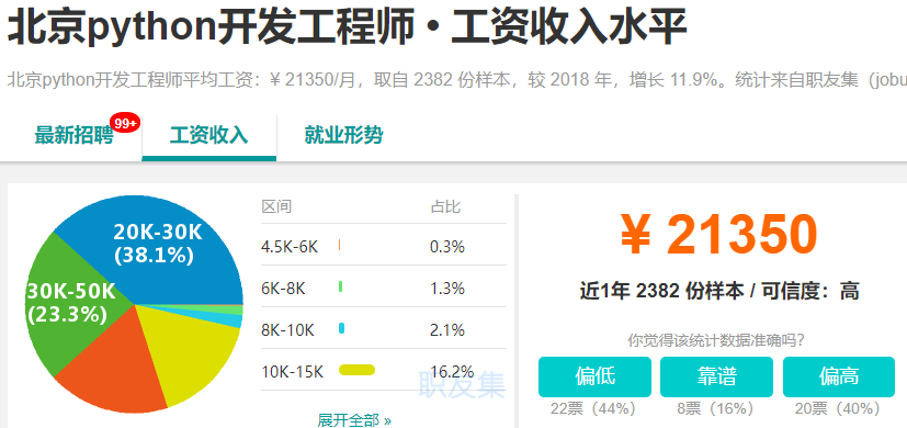 由于Python的火热,刺激了市场的需求,在BOSS直聘、拉勾网等互联网招聘网站上,Python开发工程师的年薪普遍在25万-50万之间。