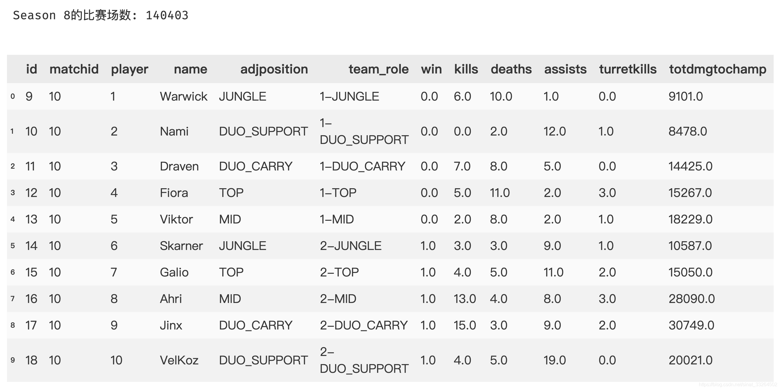 在此次分析中,我们选取绝大部分的S8赛季的比赛: