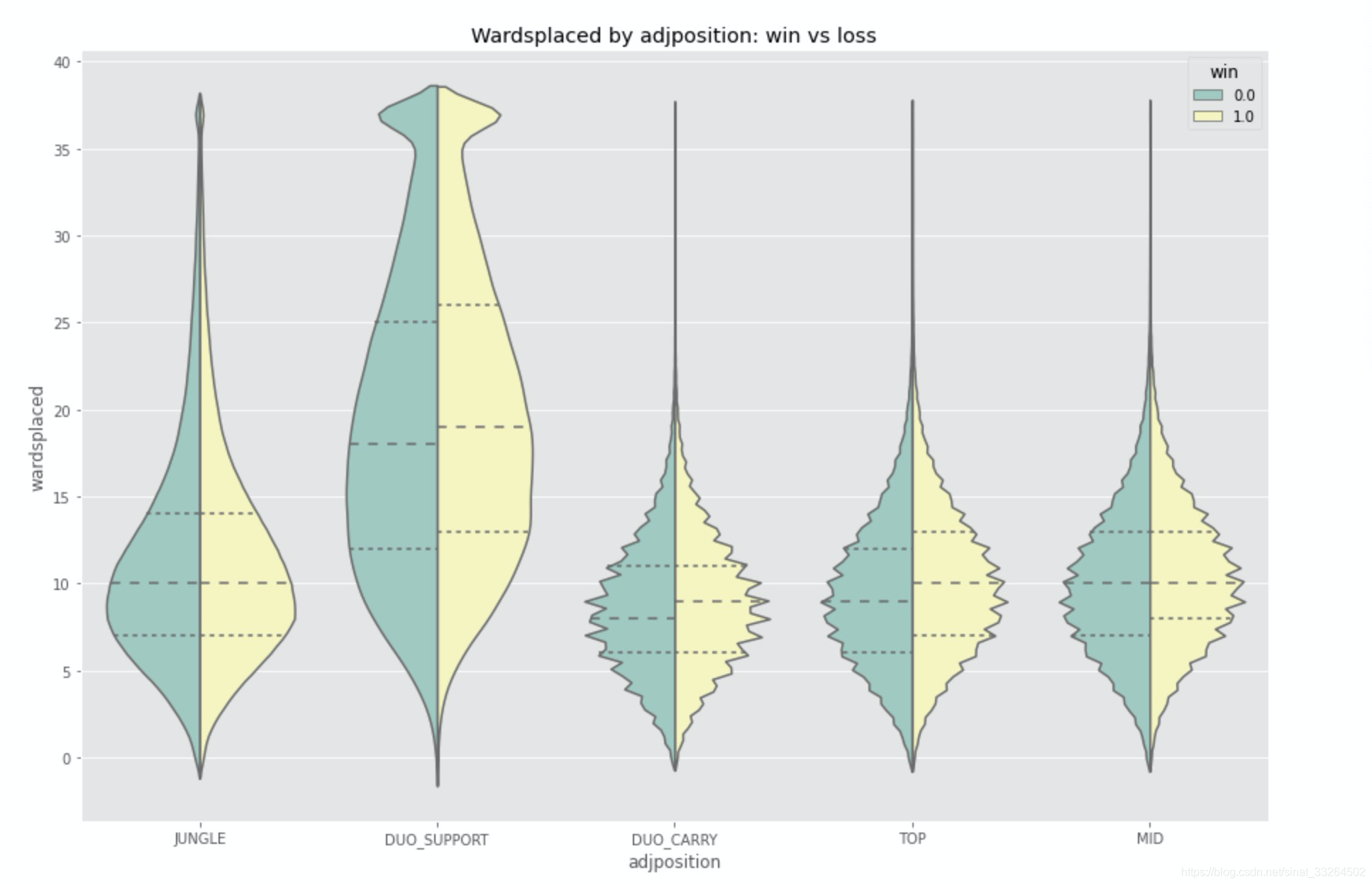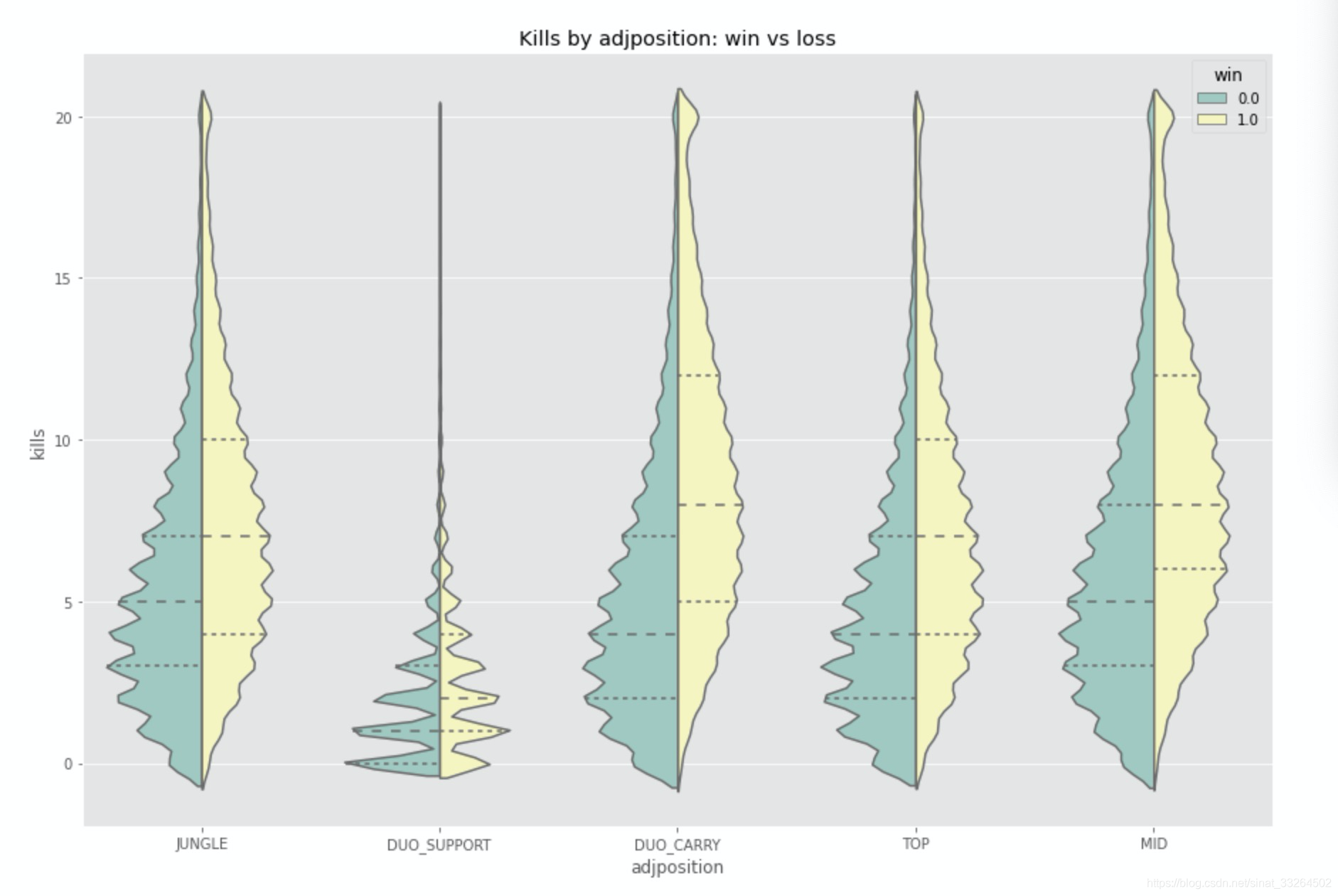 C位与中单是击杀数比较多的,而辅助明显是不太负责击杀的;而赢方的击杀数要明显高于输方~