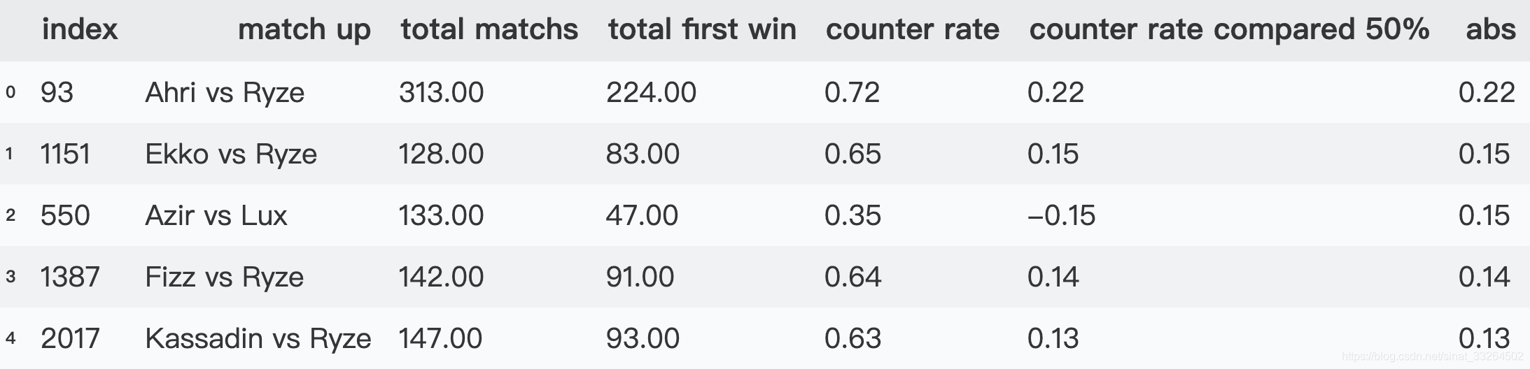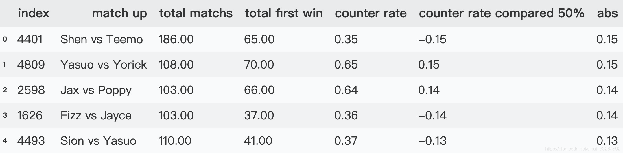 counter_mid.columns = ['match up', 'total matchs', 'total first win']