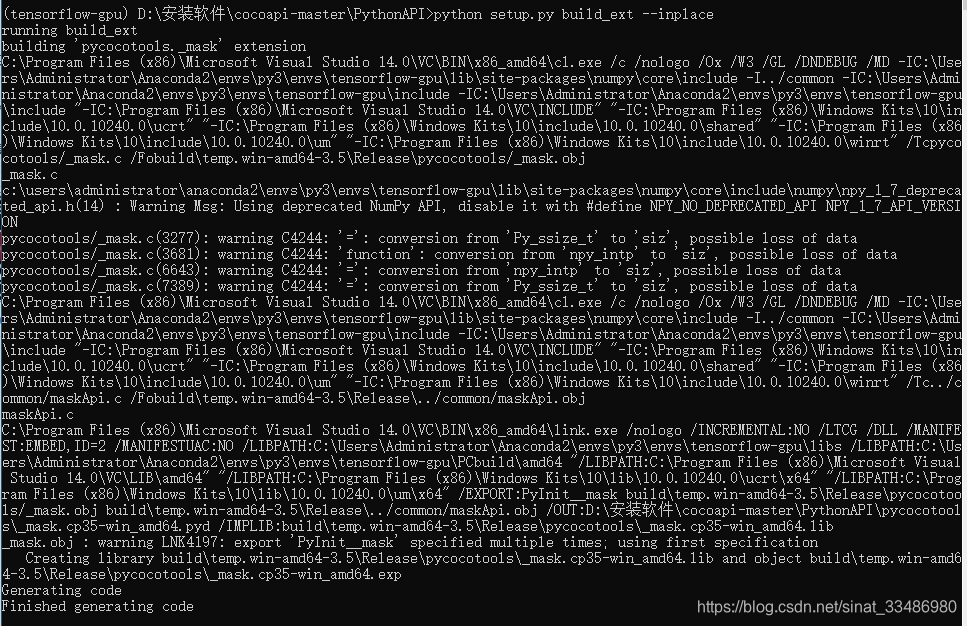 修改完以后,然后在pythonAPI这个文件夹下打开命令行窗口,输入python setup.py build_ext --inplace 进行编译源码,
