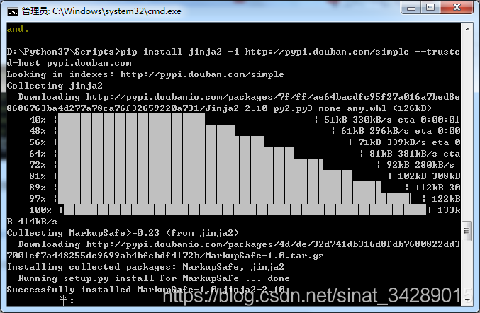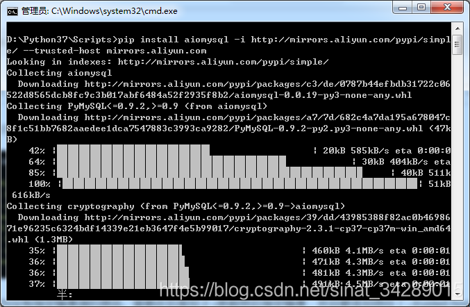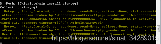 去搜了一下,知道是因为没有指定镜像源的原因。需要在后面加上-i参数然后指定镜像,并且要添加信任(--trusted-host 源地址)