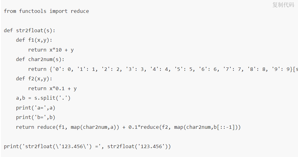 利用map和reduce编写一个str2float函数,如把字符串'123.456'转换成浮点数123.456: