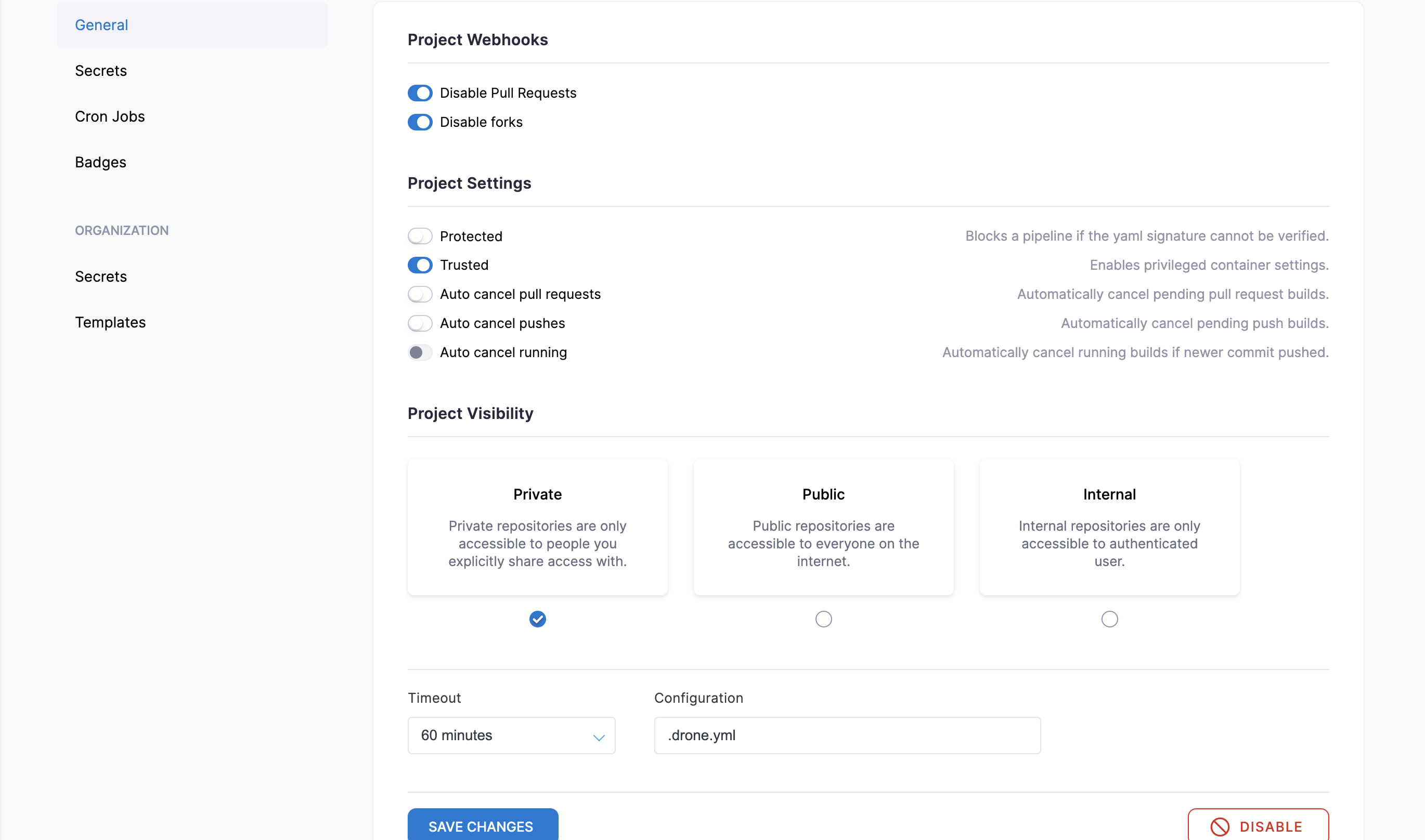 Drone 服务器使用环境变量进行配置。本文引用了配置选项的子集,定义如下。有关配置选项的完整列表,请参阅配置。