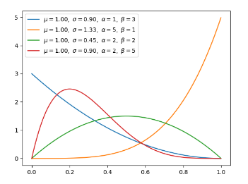 3、当β分布满足特殊情况时,均匀分布是相同的(alpha=1,β=1)。