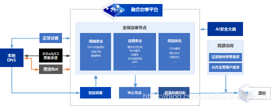 企业在自身的网络边界不需要做任何调整,无需VPN的技术需求,而基于部署在企业内部的YUNDUN连接器可以兼容企业已有的身份管理、身份控制能力,从而打通访问链条,实现零信任的框架,而且由于边缘节点静态资源缓存,同时还能兼顾应用的加速访问。