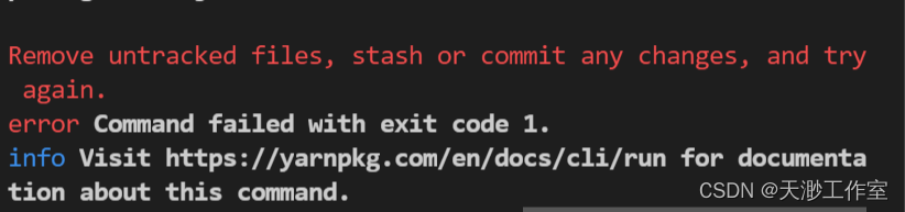 本文主要是介绍Remove untracked files, stash or commit any changes, and try again,希望对大家解决编程问题提供一定的参考价值,需要的开发者们随着小编来一起学习吧!