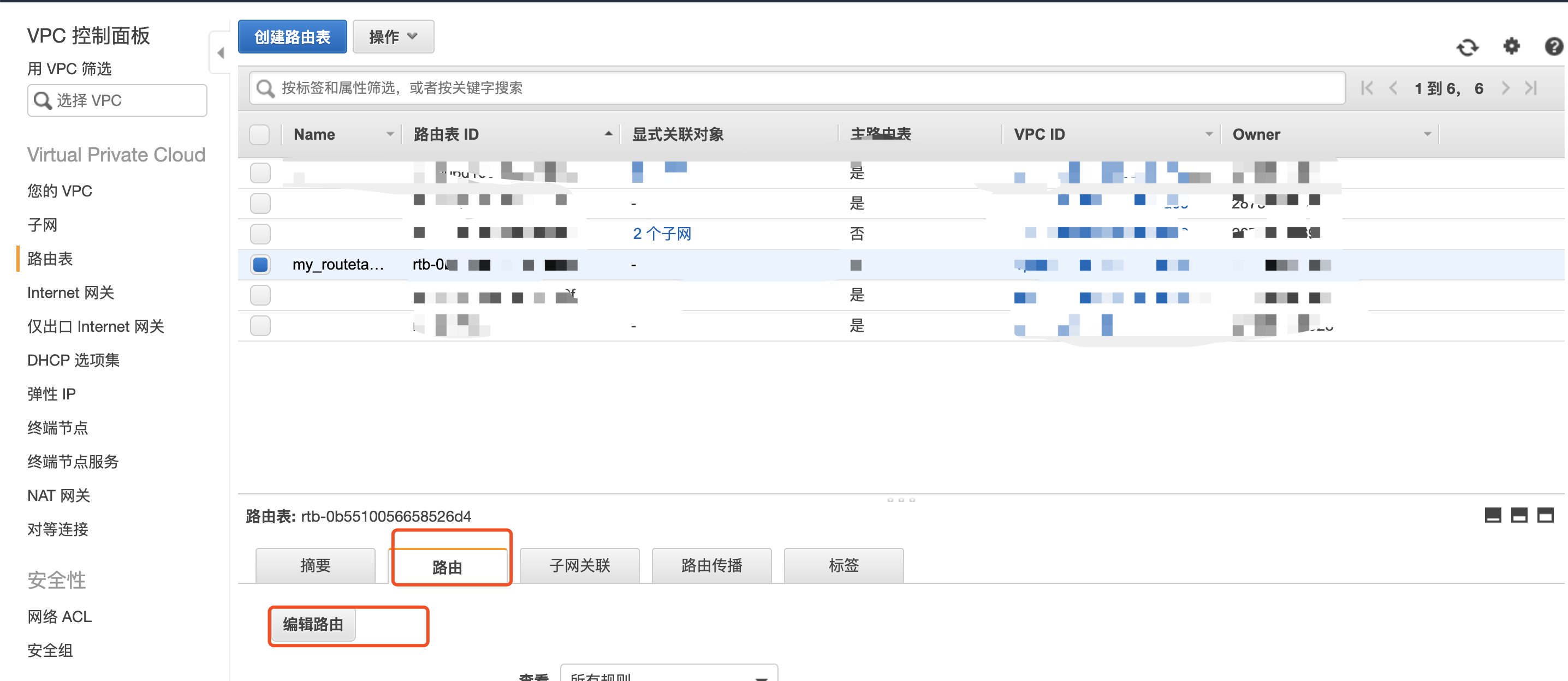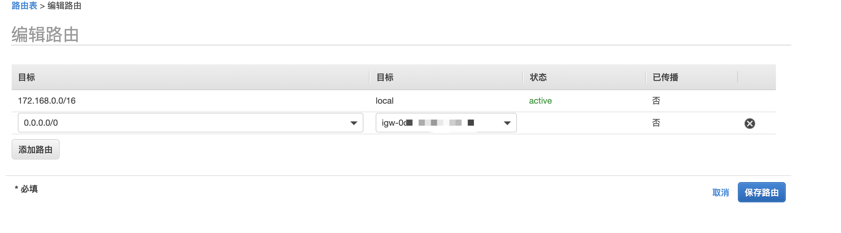 点击下面的“路由”选项卡,增加一条igw路由: