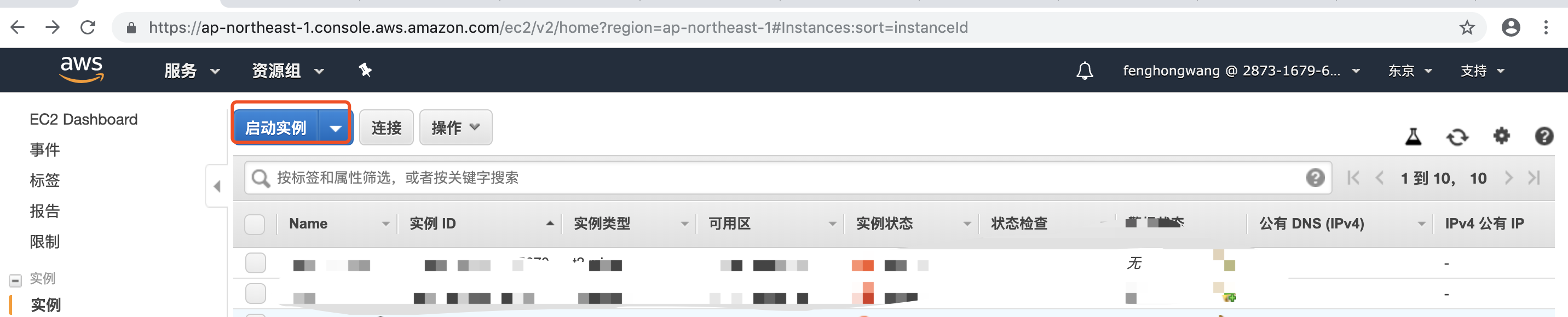 几分钟后,实例上的实例状态列将会变成“正在运行”,并且系统会显示一个公有 IP 地址。您可以按表格右上角的刷新按钮来刷新“实例状态”列。复制 AWS 实例的公有 IP 地址,以便使用它通过 SSH 连接该实例。