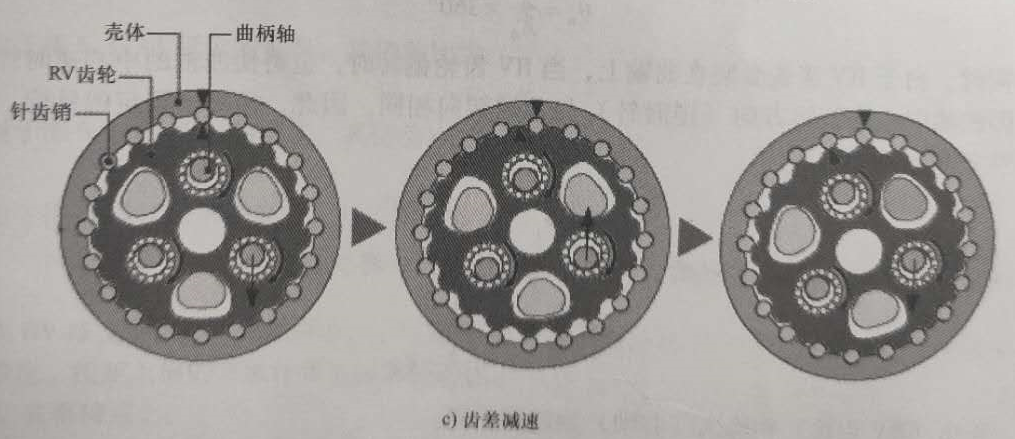 当偏心轴带动RV齿轮旋转360°时,RV齿轮的0°基准齿将于针轮基准位置产生1个齿的偏移,完成减速。