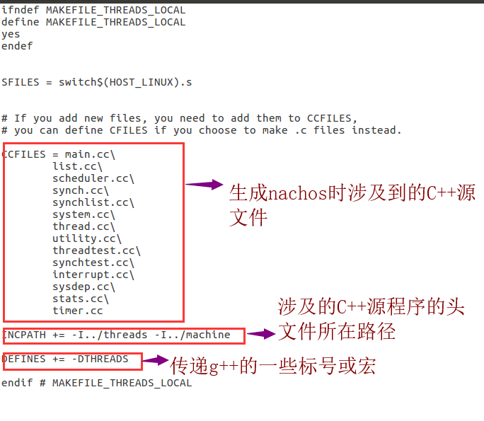 (1)CCFILES:指定在该目录下生成Nachos 时所涉及到的C++源文件;