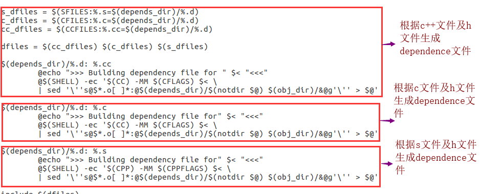 在 Makefile.dep 文件的最后几行,给出了 makefile.common 所使用的几个宏(g++使用):