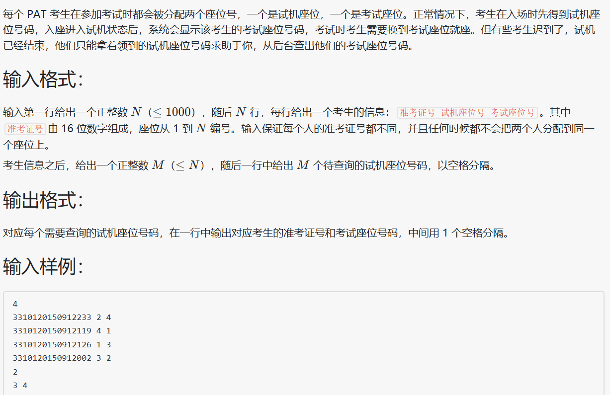 本文主要是介绍L1-005 考试座位号(python),希望对大家解决编程问题提供一定的参考价值,需要的开发者们随着小编来一起学习吧!