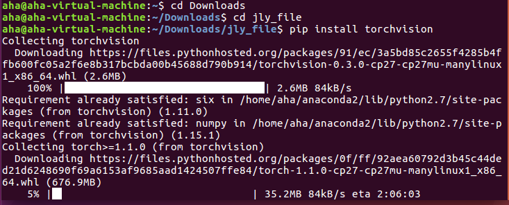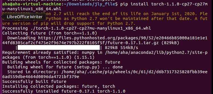 然后开始安装。先把下载的pytorch放在ubuntu下,进入到所放目录下,