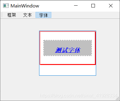 {if(checked){QTextCursor cursor=ui->textEdit->textCursor();QTextBlockFormat blockFormat;//文本块格式blockFormat.setAlignment(Qt::AlignCenter);//水平居中cursor.insertBlock(blockFormat);//使用文本块格式QTextCharFormat charFormat;//字符格式charFormat.setBackground(Qt::lightGray);//设置背景色charFormat.setForeground(Qt::blue);//设置字体颜色//使用宋体12号,加粗倾斜charFormat.setFont(QFont(QObject::tr("宋体"),12,QFont::Bold,true));charFormat.setFontUnderline(true);//使用下划线cursor.setCharFormat(charFormat);//使用字体格式cursor.insertText(QObject::tr("测试字体"));}else{}
