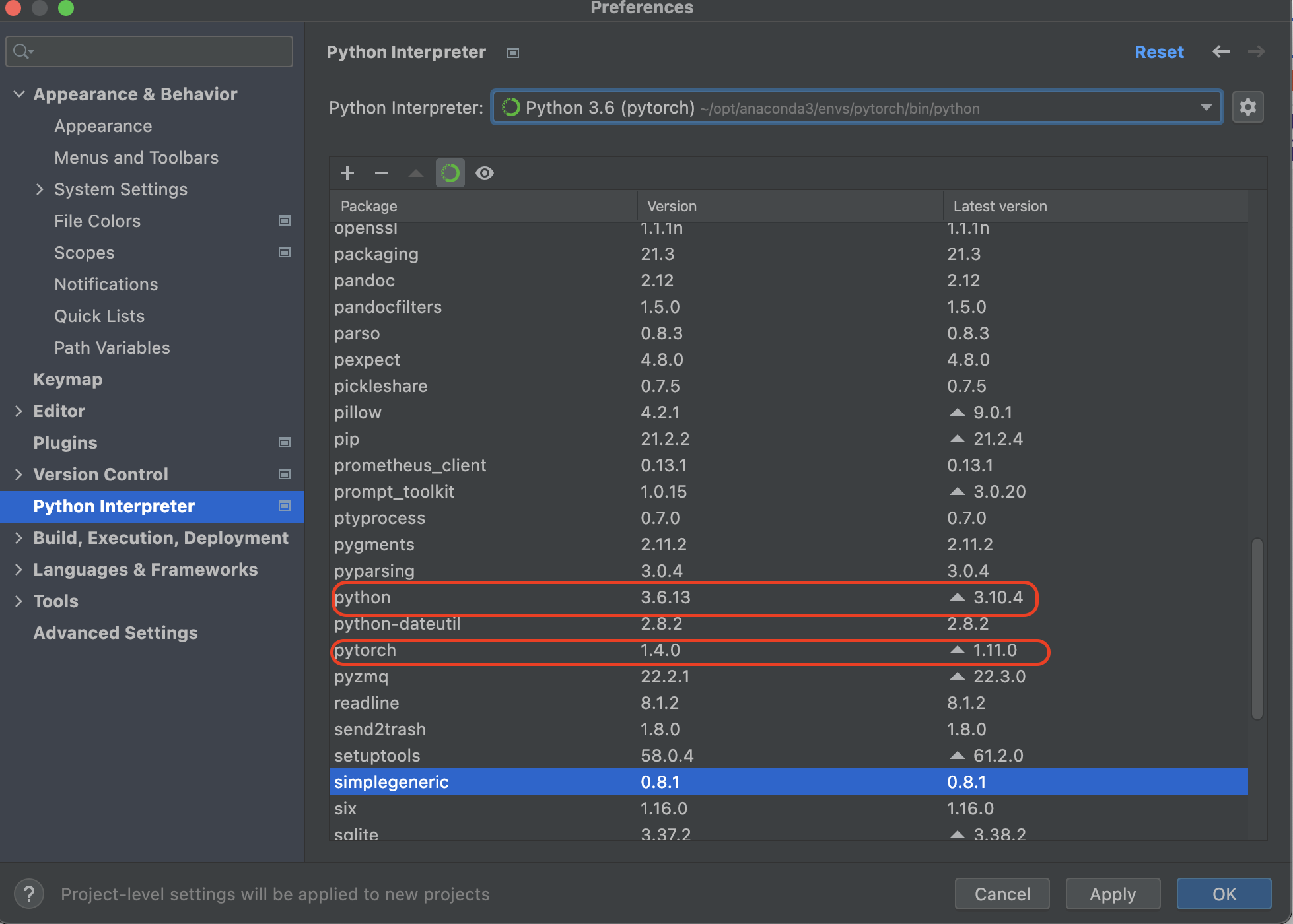 可以看到安装的python3.6(pytorch)中包括了pytorch和python。