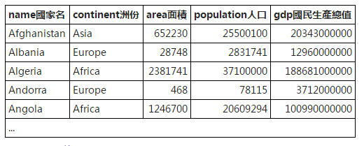 9.找出洲份,當中全部國家都有少於或等於 25000000 人口. 在這些洲份中,列出國家名字name,continent 洲份和population人口。