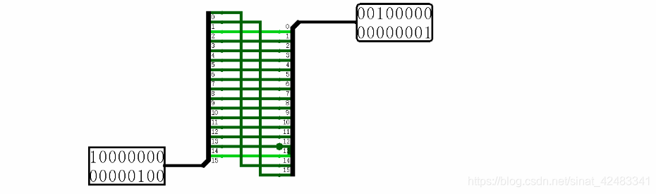 例如考虑将8位扩展成16位,一种做法是利用Splitter,将原数与00000000合并,如图