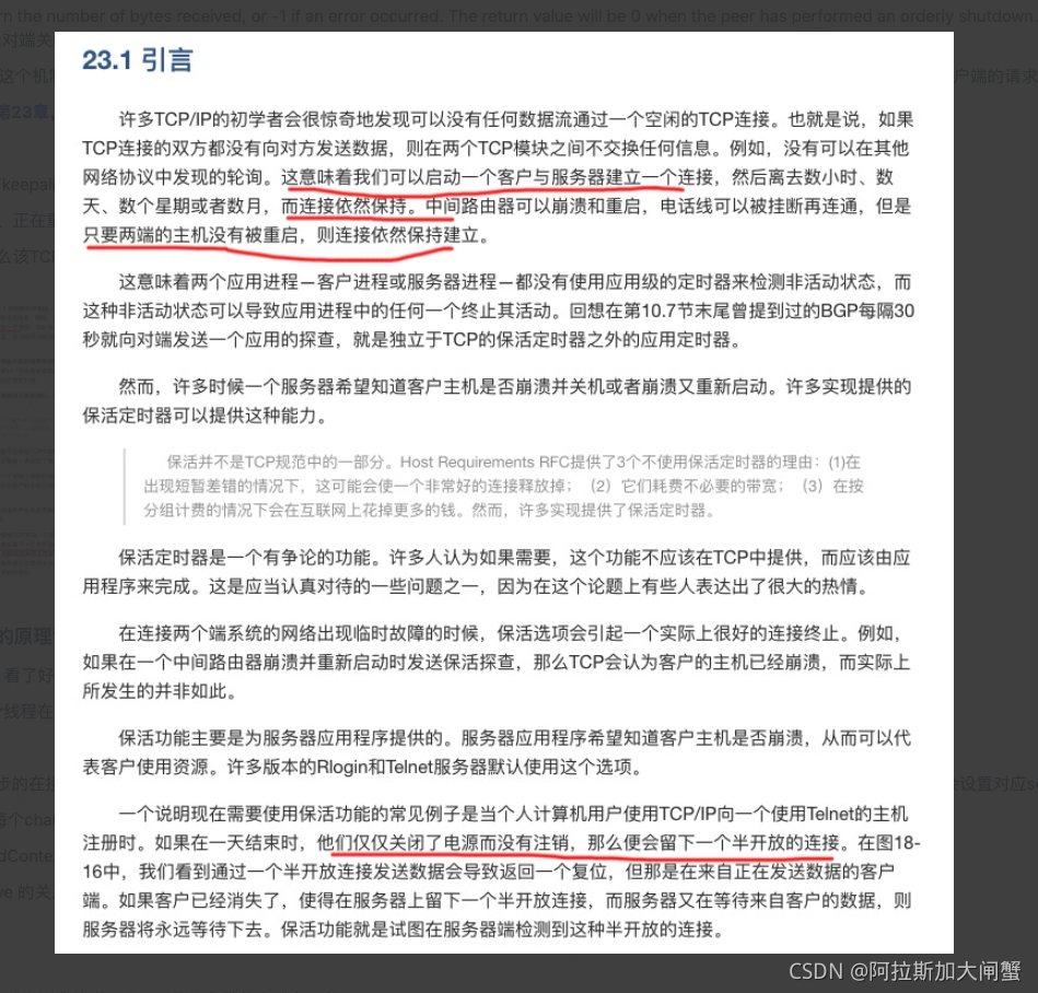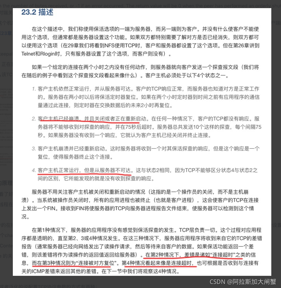1.没有收到FIN信号,没有keepalive,那么该TCP会在两个小时之后尝试嗅探(天塌了它也不管)