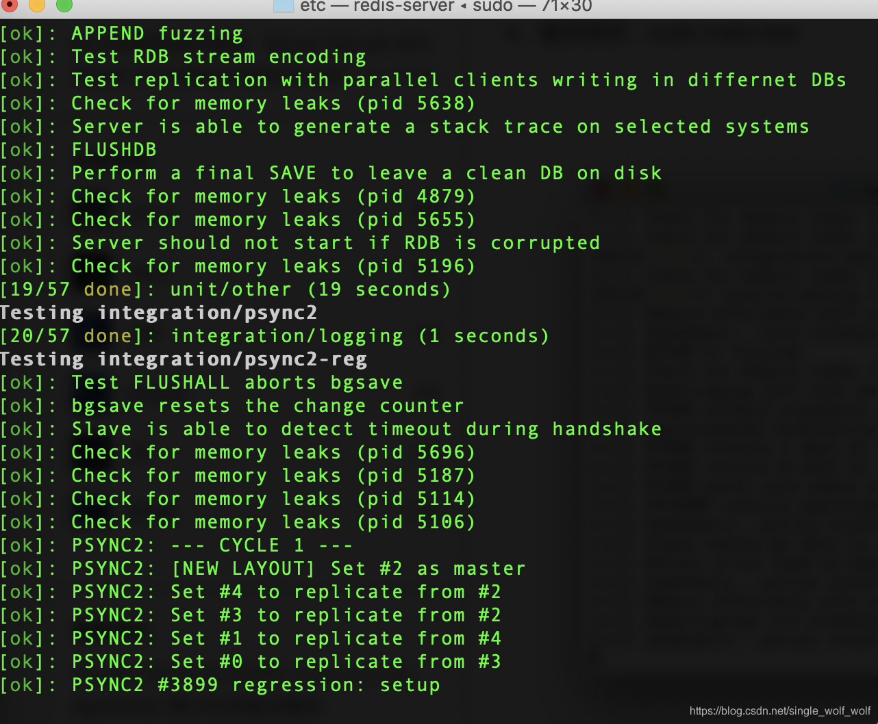 5. 编译文件:sudo make test,出现如下结果表示成功: