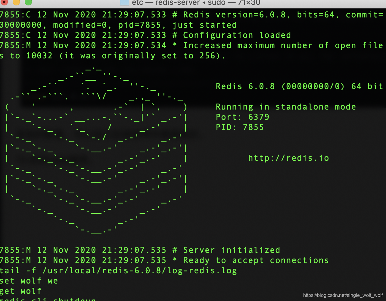 查看日志:tail -f /usr/local/redis-6.0.8/log-redis.log